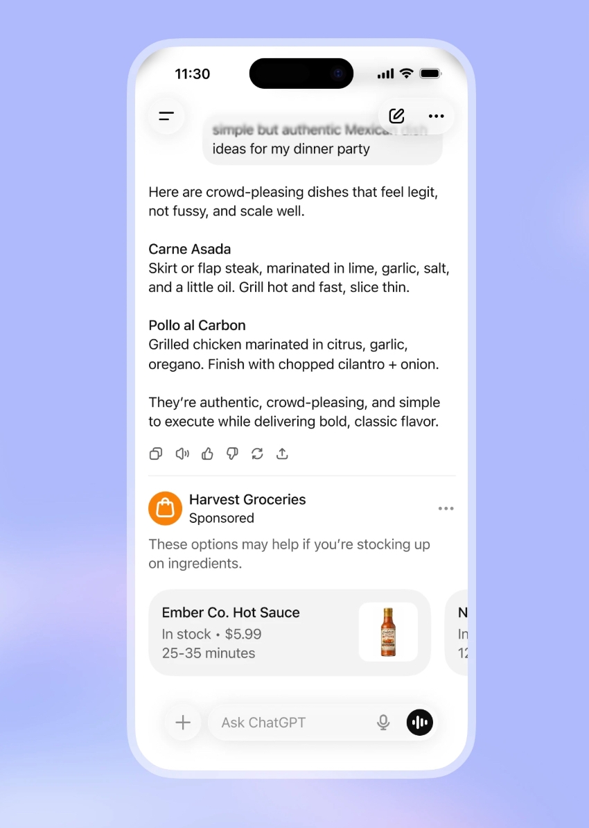According to ChatGPT, these ads will appear only when relevant and will be placed below responses and separate from the answer, positioning them as a helpful add-on to the experience, not the force shaping the conversation.