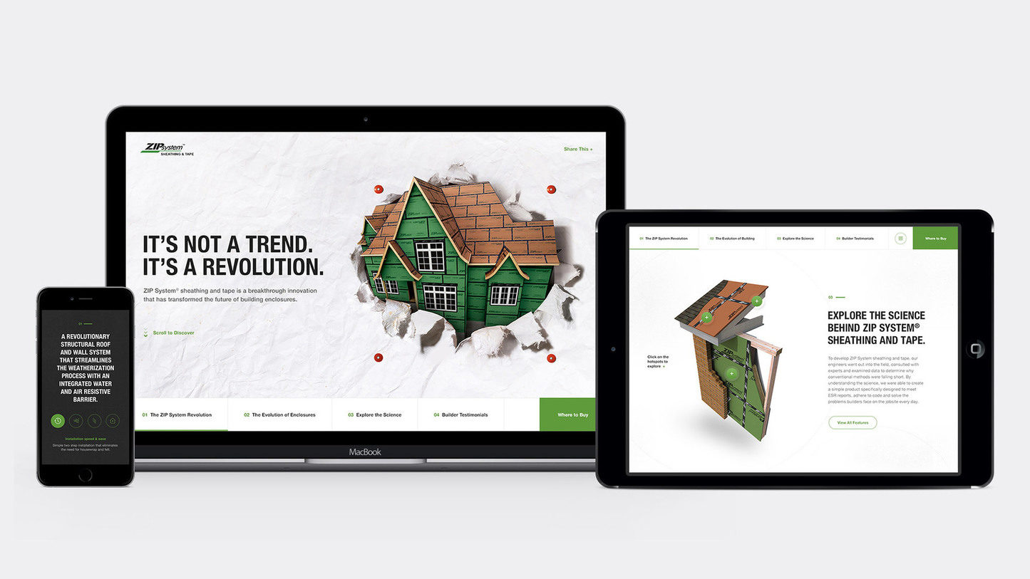 Our team developed a tightly integrated campaign that positioned ZIP System sheathing and tape as a system of products revolutionizing the approach to building enclosures. Every element of the campaign, from print ads to pre-roll, drove traffic to an educational and engaging microsite, creating a seamless customer journey.